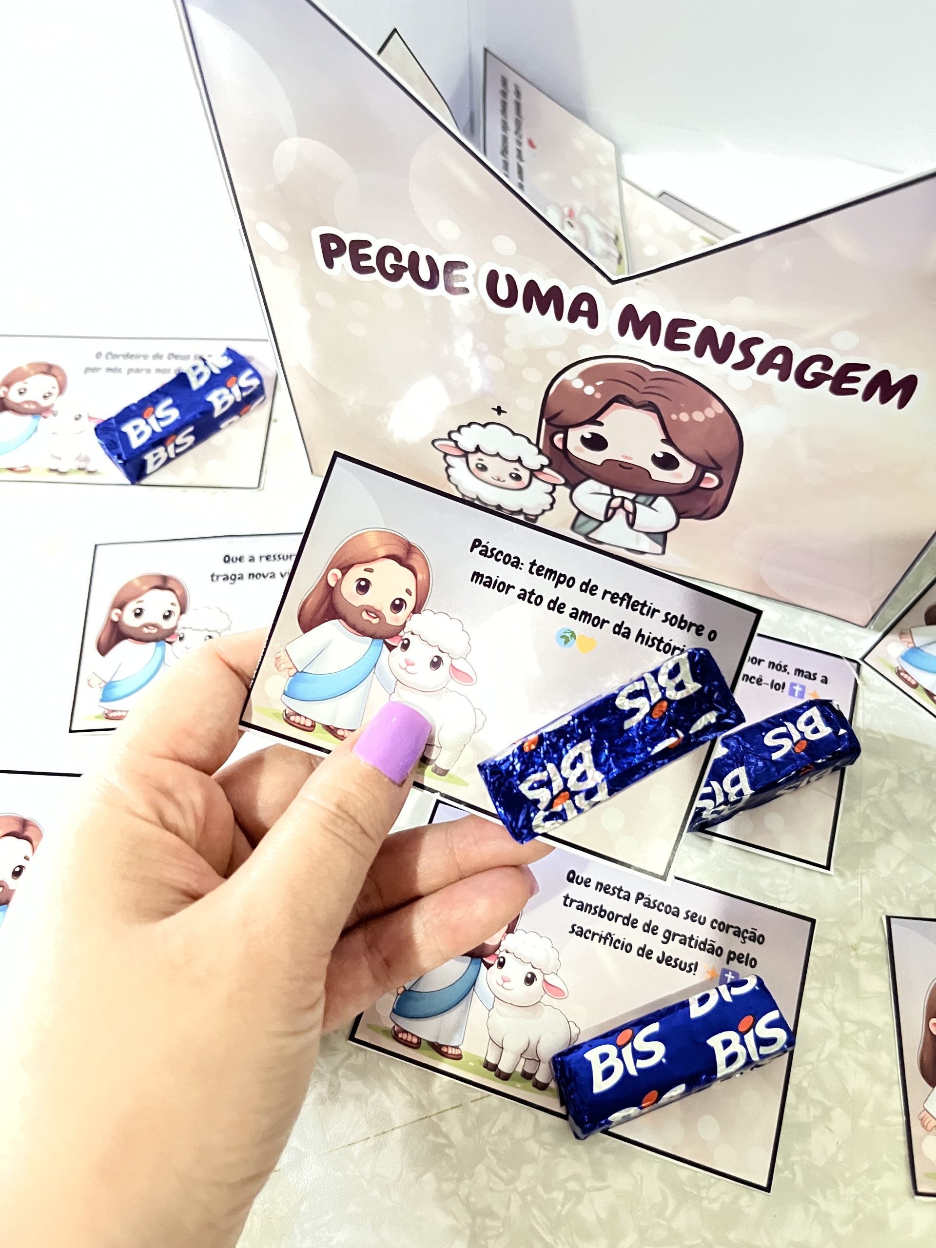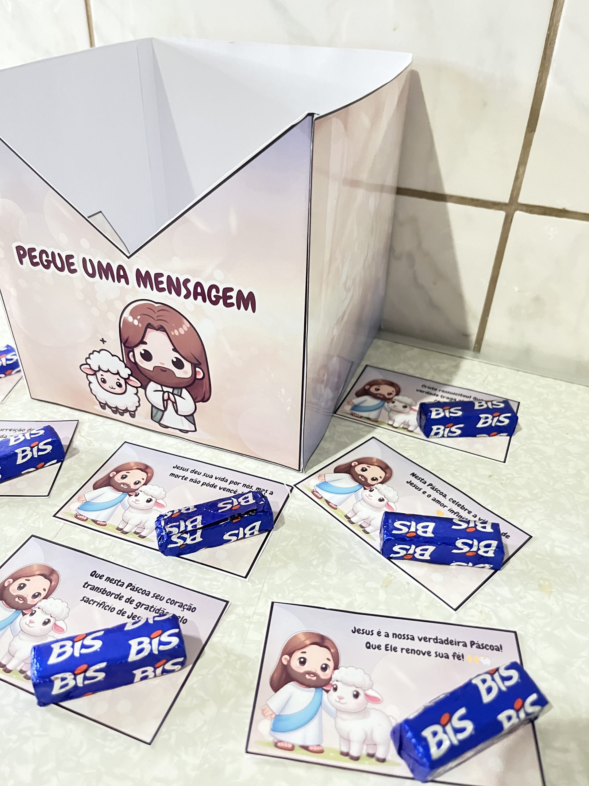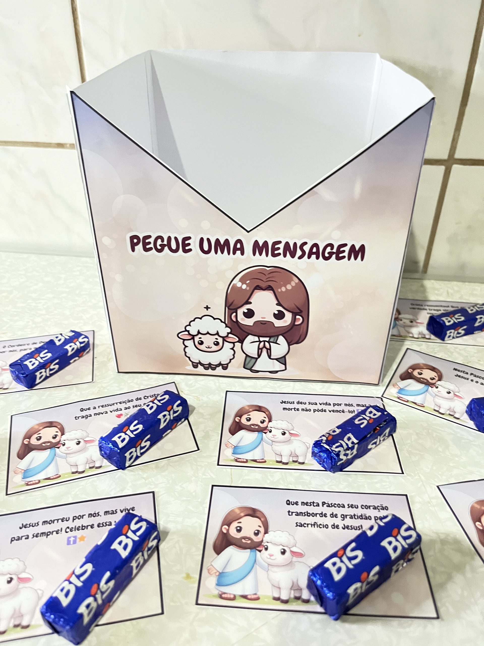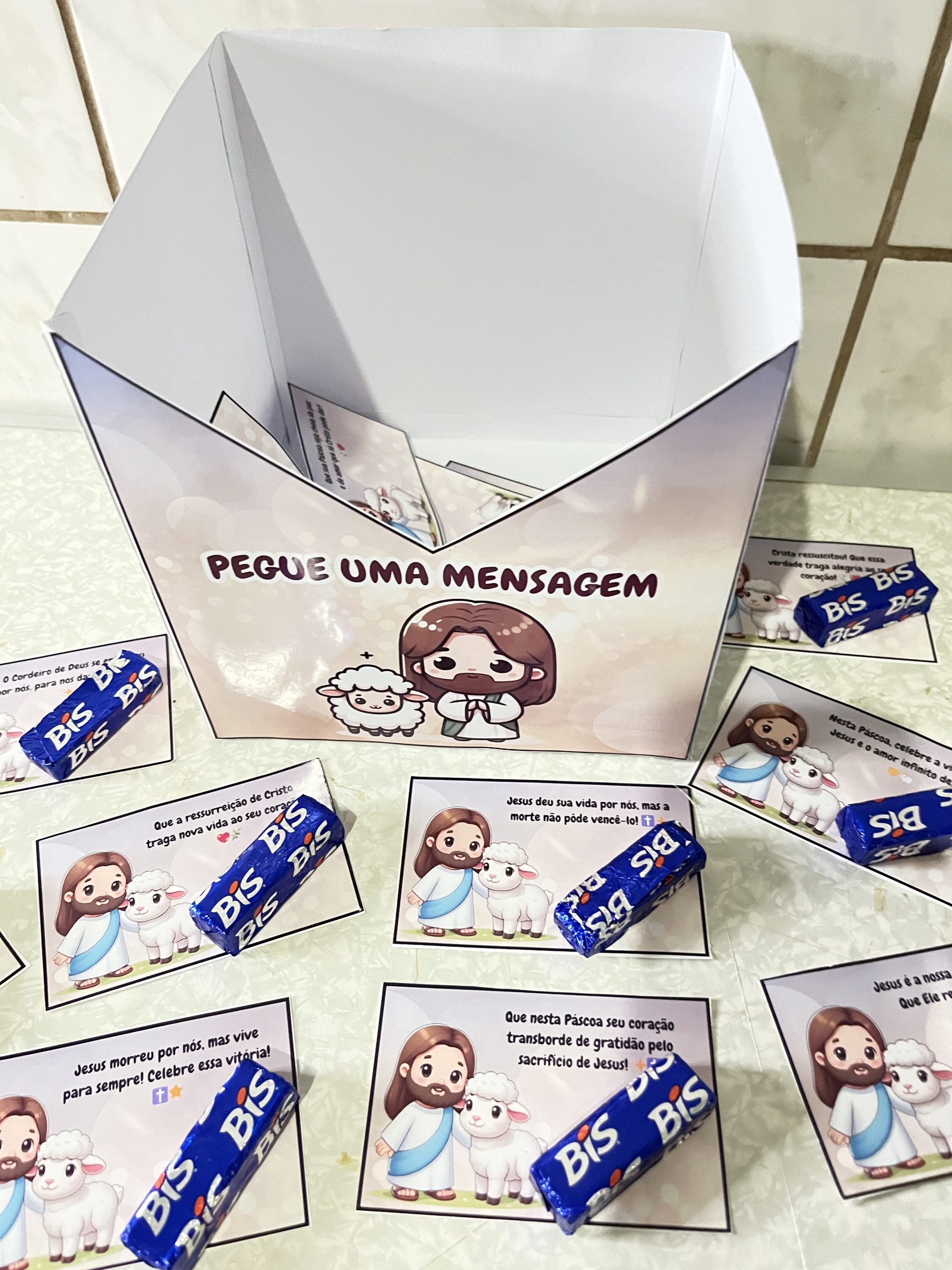 Abra esta caixa e deixe-se inspirar pelo verdadeiro significado da Páscoa! 🌿 Cada mensagem é um lembrete do amor, sacrifício e vitória de Jesus sobre a morte.
